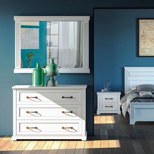 Kolekce Bianca představuje skutečný vzor slavnostního a útulného stylu pro ložnice. Bílá sestava je skvělým nálezem pro ty, které oceňují klasické tvary a přejí si rozjasnit místnost. Lakonické přímočaré prvky úpravy jsou vyrobeny s velkým důrazem na detail a přesným dodržováním stylu. Při výrobě jsou použity pouze vysoce kvalitní materiály. Kolekci doplňuje pohodlná manželská postel s vysokým obdélníkovým čelem.