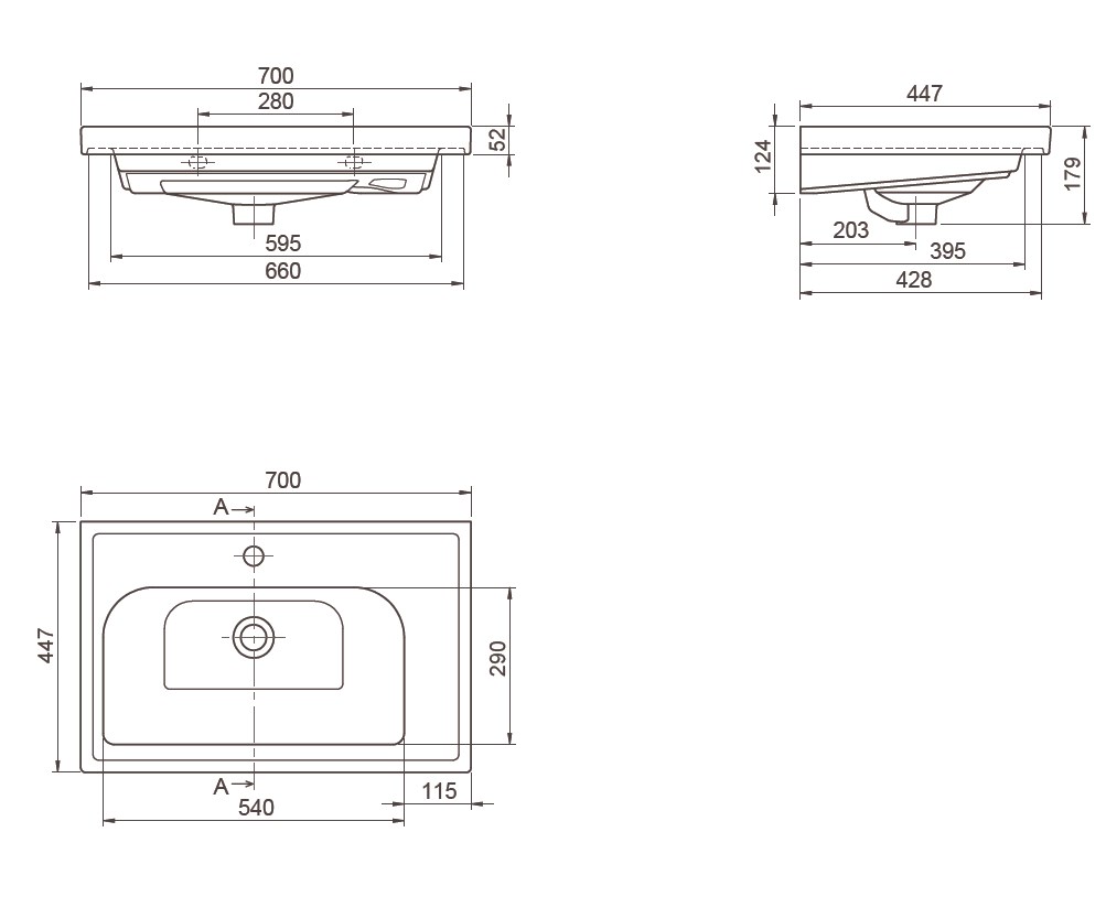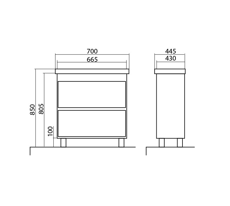 Výška: 850 mm x šířka: 700 mm x hloubka: 445 mm