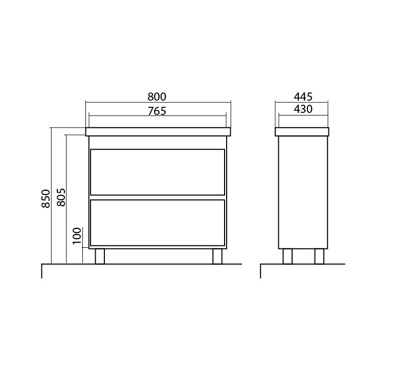Výška: 800 mm x šířka: 850 mm x hloubka: 445 mm