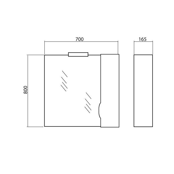 Výška: 800 mm x šířka: 700 mm x hloubka: 165 mm