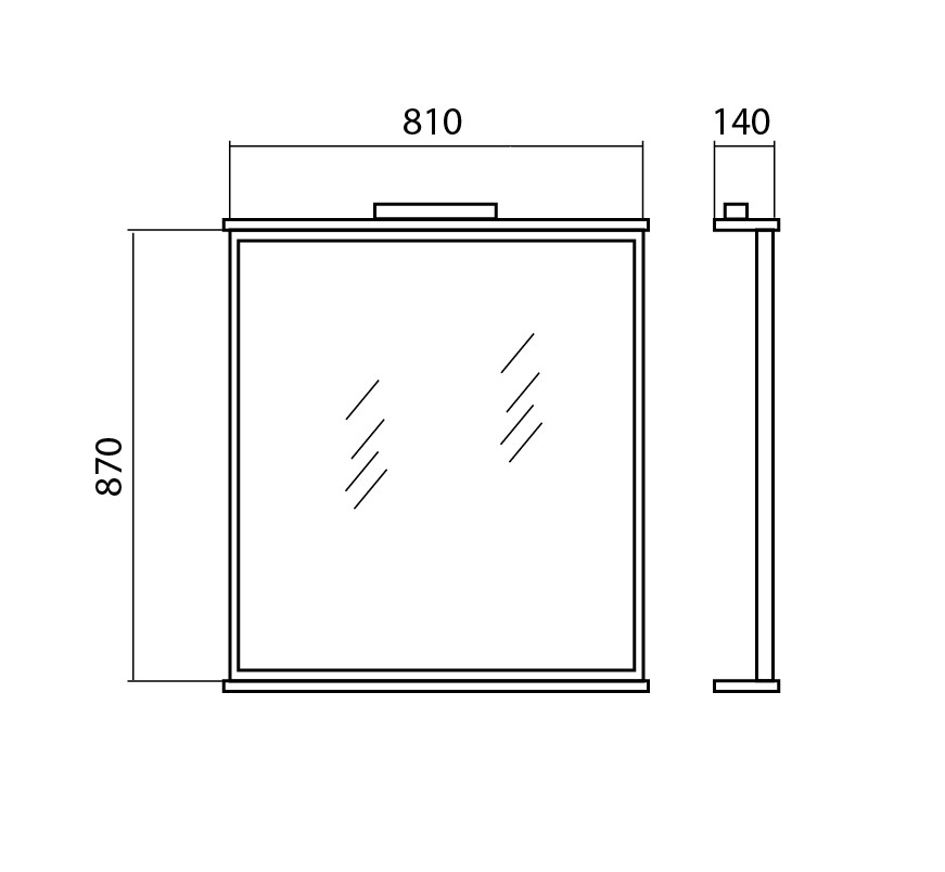 Výška: 870 mm x šířka: 810 mm x hloubka: 140 mm