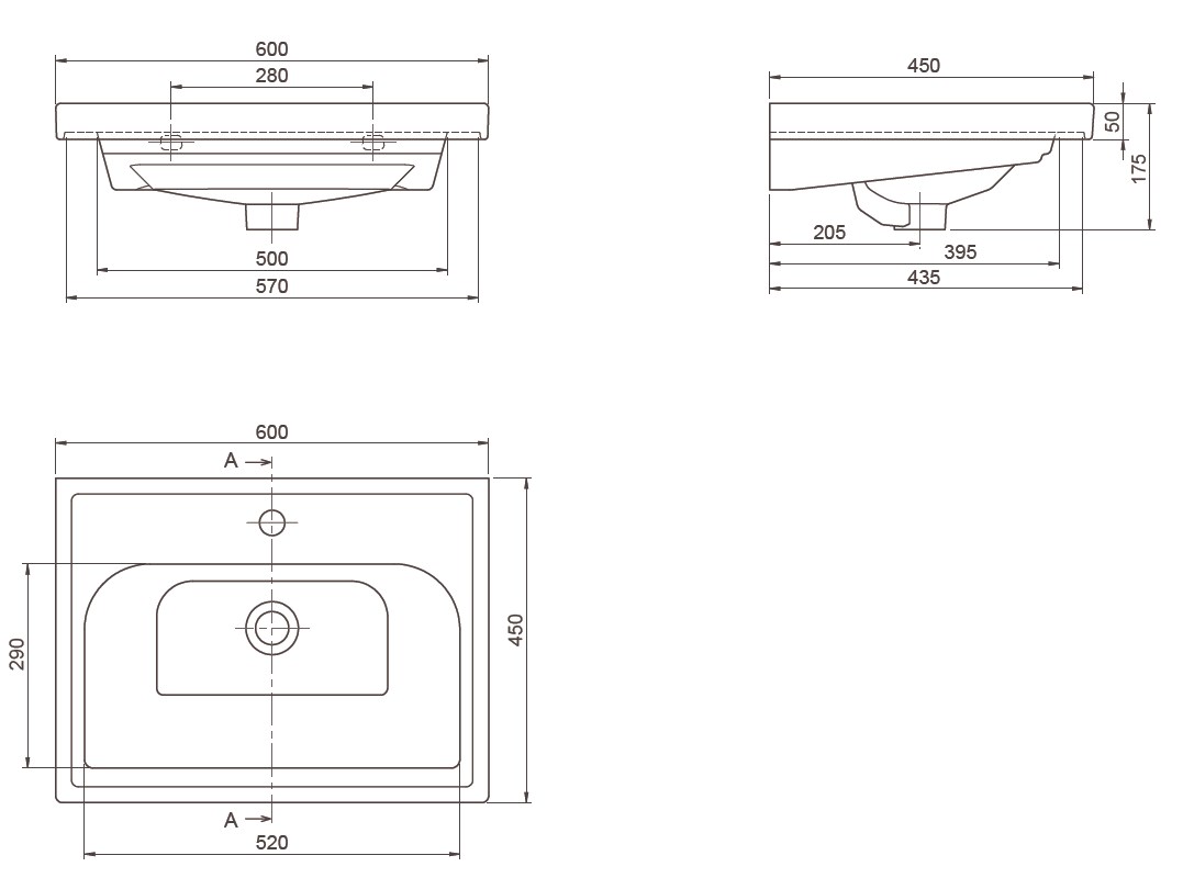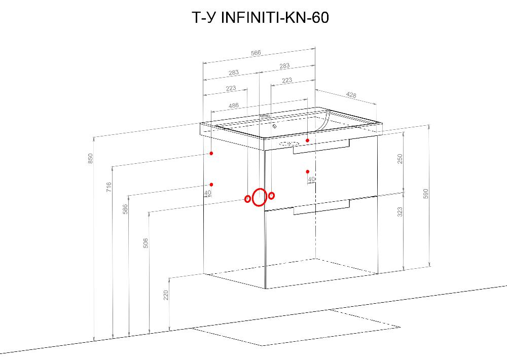Skříňka nástěnná s umyvadlem 56.6 cm