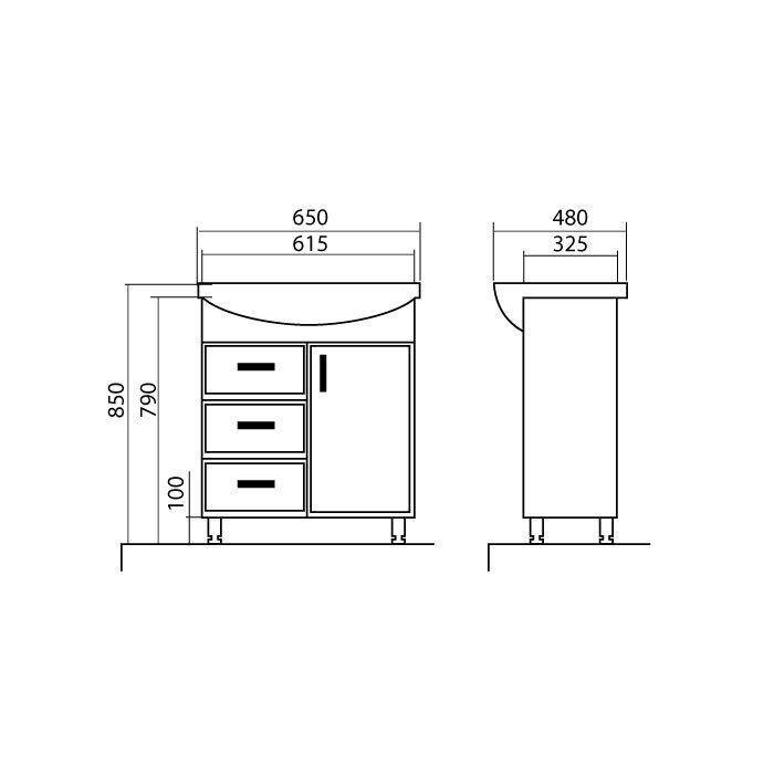 Výška: 850 mm x šířka: 650 mm x hloubka: 480 mm