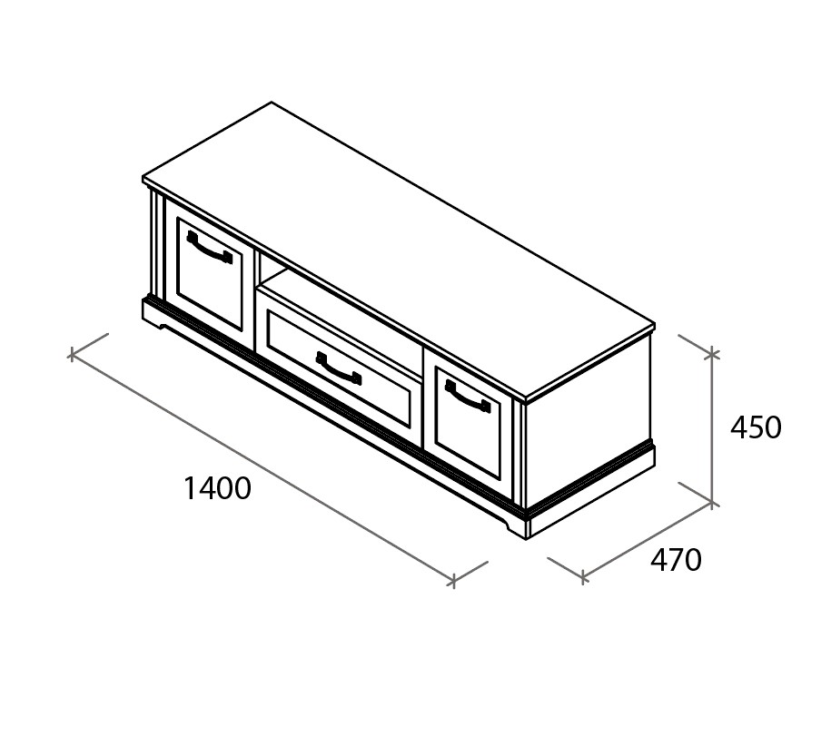 Výška: 450 mm x šířka: 470 mm x hloubka: 1400 mm