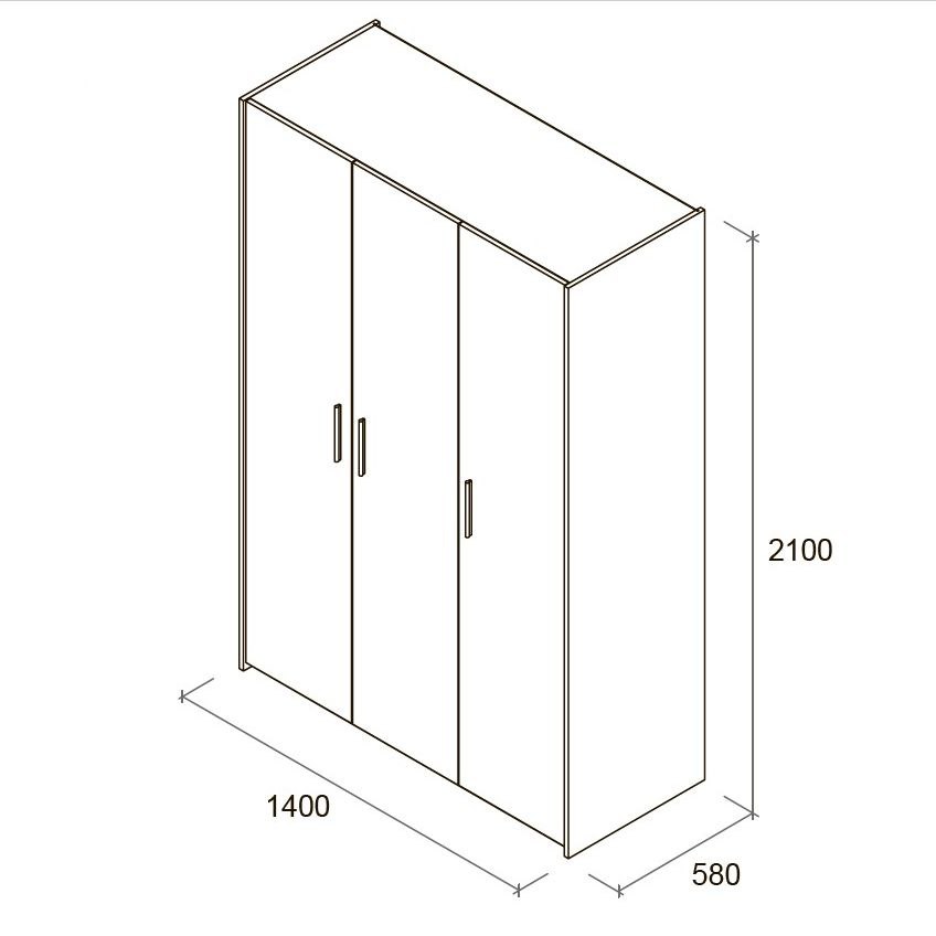 Výška: 2100 mm x šířka: 1400 mm x hloubka: 580 mm