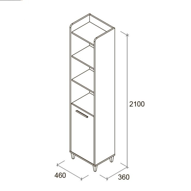 Výška: 2100 mm x šířka: 460 mm x hloubka: 360 mm