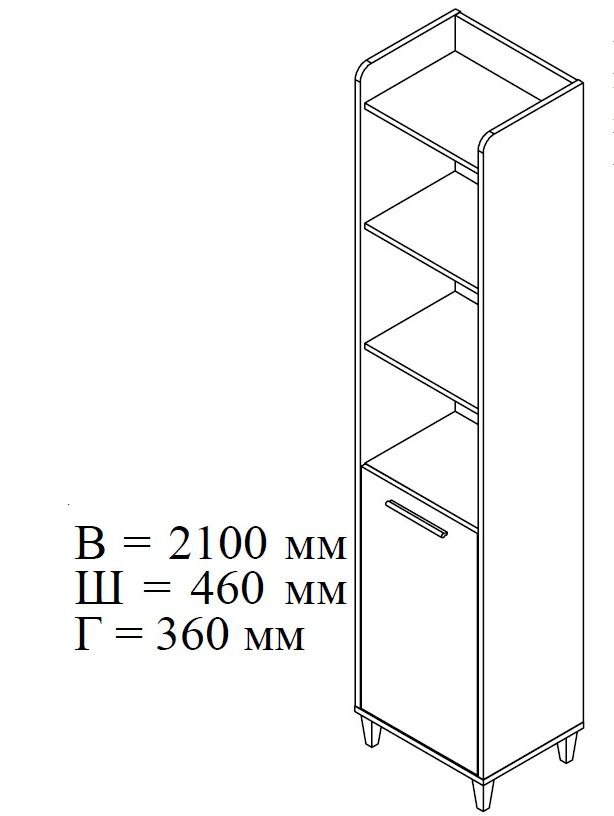 Výška: 2100 mm x šířka: 460 mm x hloubka: 360 mm