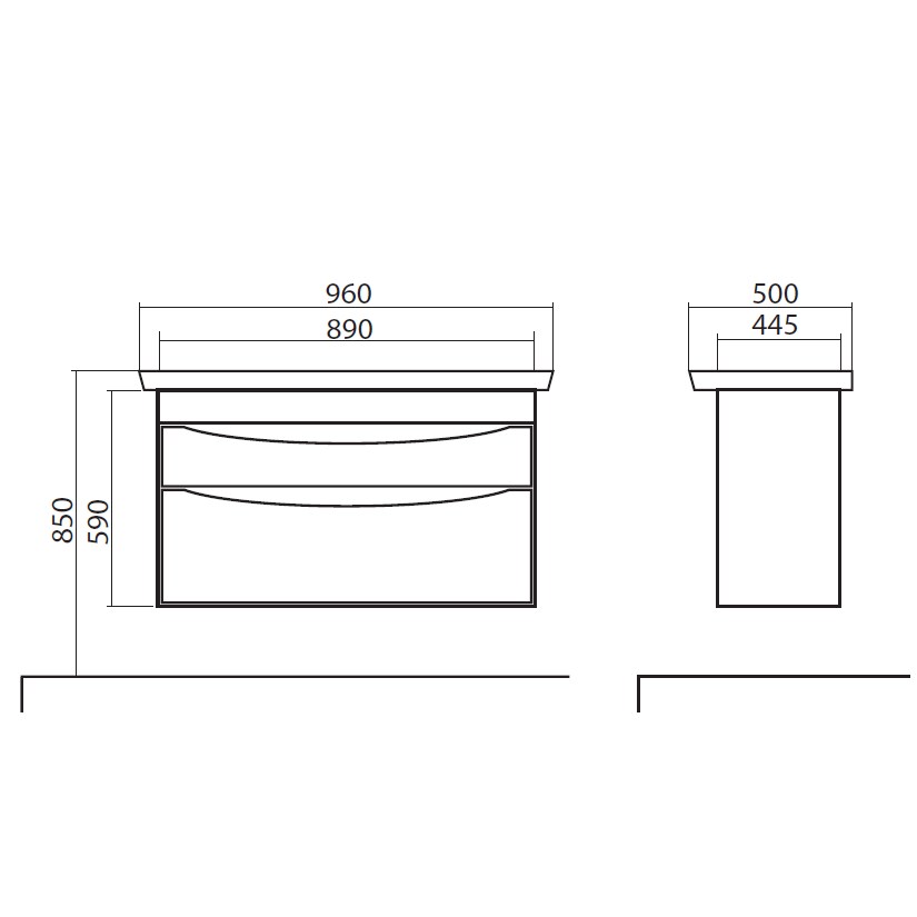 Výška: 850 mm x šířka: 960 mm x hloubka: 500 mm