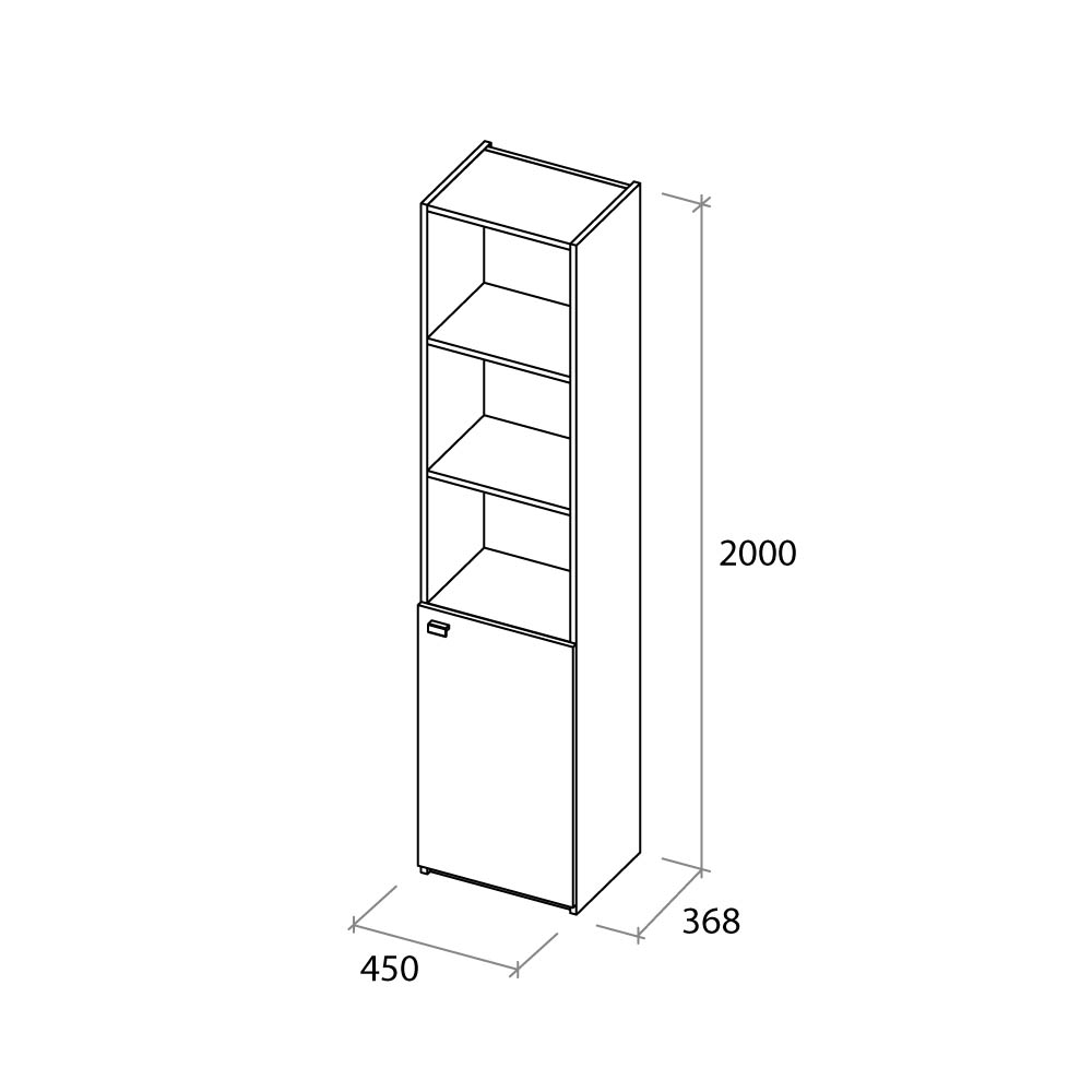 Výška: 2000 mm x šířka: 450 mm x hloubka: 370 mm