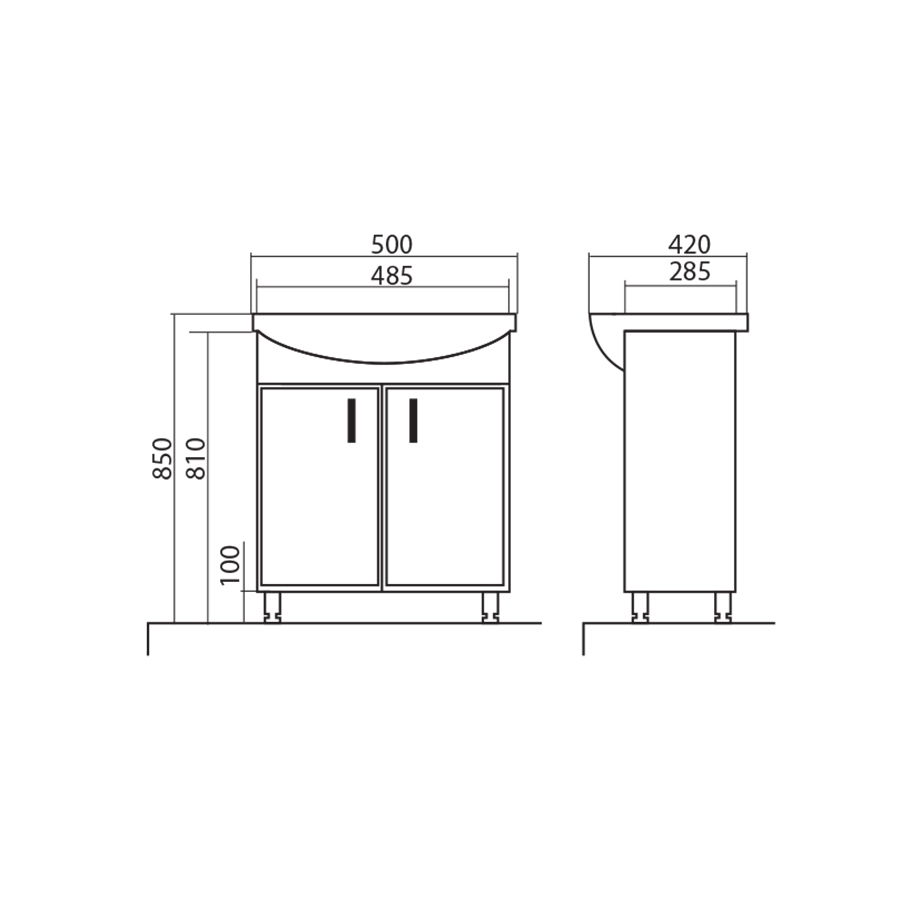 Výška: 850 mm x šířka: 500 mm x hloubka: 420 mm