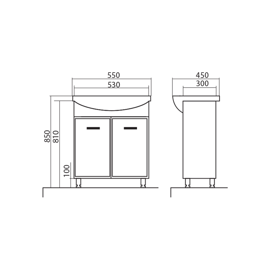 Výška: 850 mm x šířka: 550 mm x hloubka: 450 mm