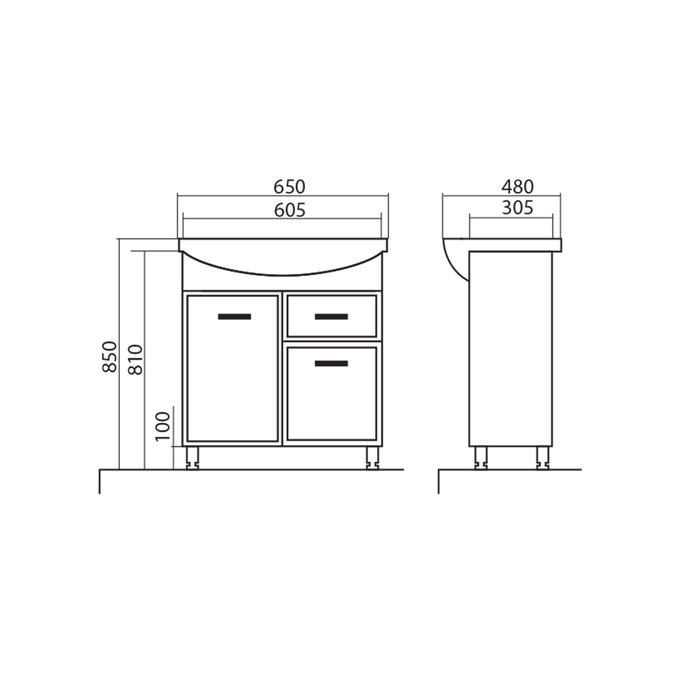 Výška: 850 mm x šířka: 650 mm x hloubka: 480 mm