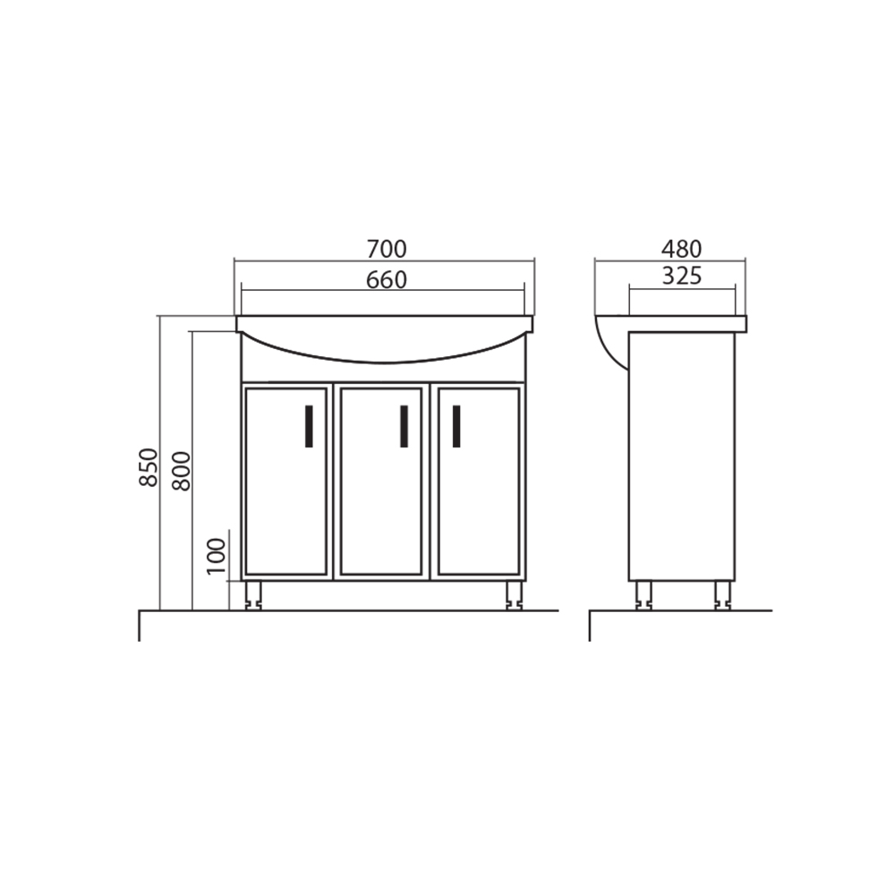 Výška: 850 mm x šířka: 700 mm x hloubka: 480 mm