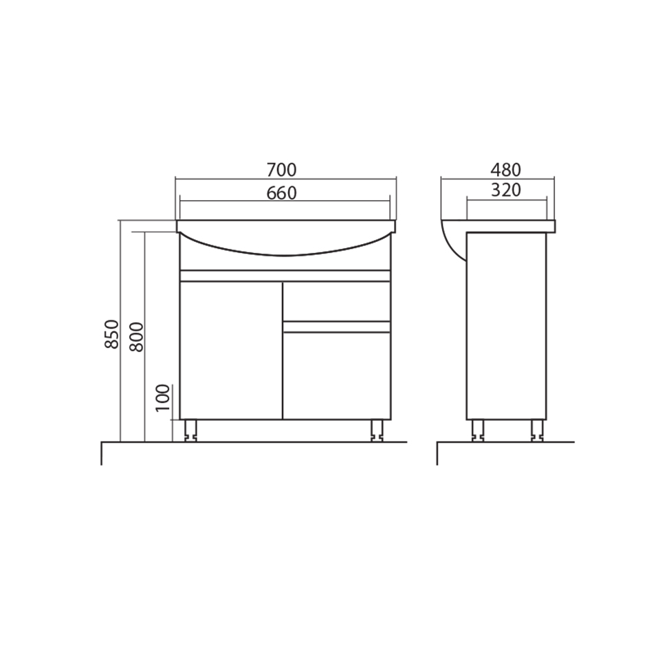 Výška: 850 mm x šířka: 700 mm x hloubka: 480 mm