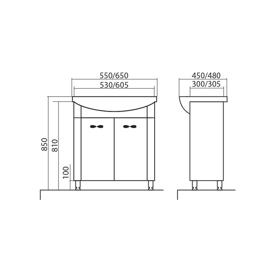 Skříňka s umyvadlem 55 cm