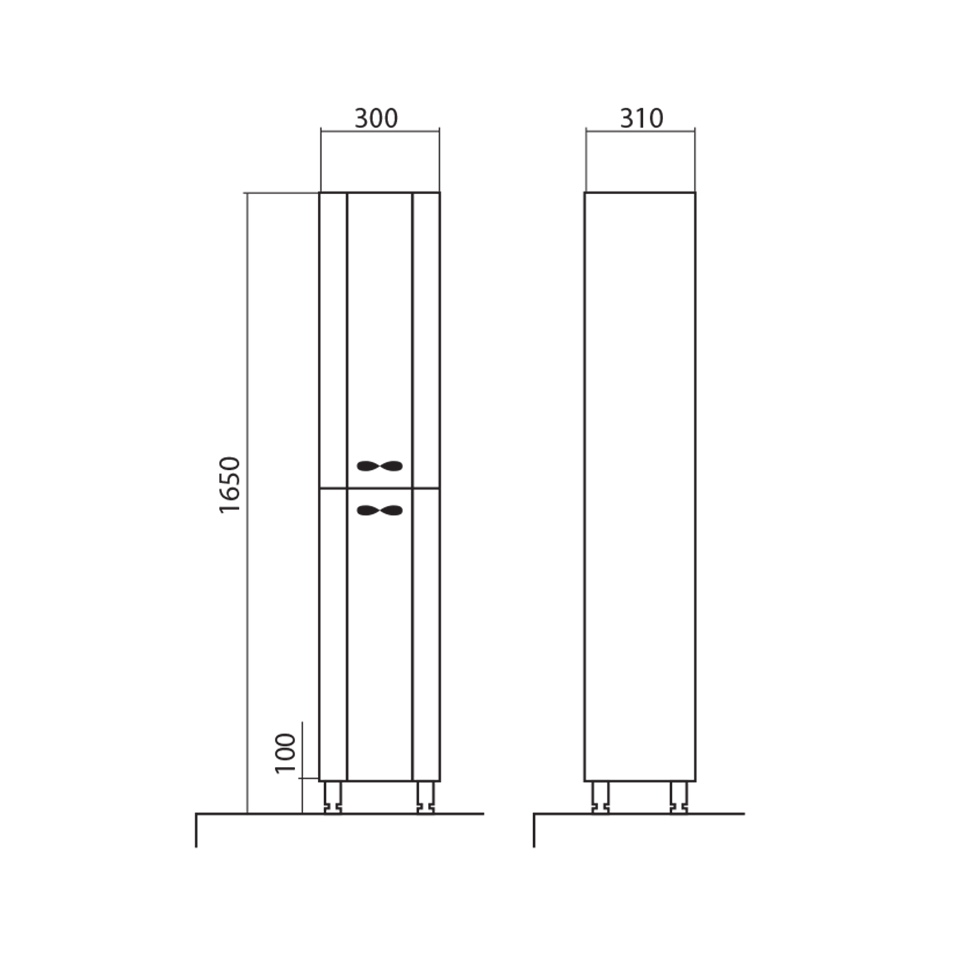 Výška: 1650 mm x šířka: 300 mm x hloubka: 310 mm